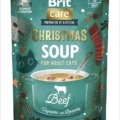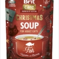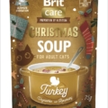 Brit Care jõulusupid – teraviljavaba märg täiendsööt kassidele. Multipakk sisaldab kolme erinevat sorti suppi: 5 tk kalaga, 5 tk kalkuniga ja 5 tk veisega.