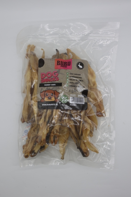 Bubu Pets kuivatatud küüliku kõrvad – täiendsööt täiskasvanud koerale.