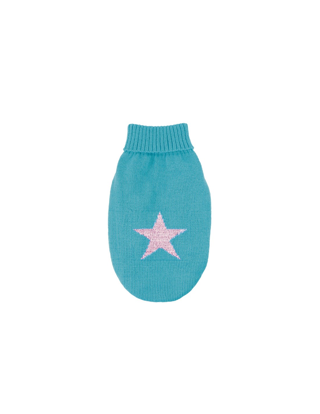 Helesinine kampsun helkiva tähega seljal.